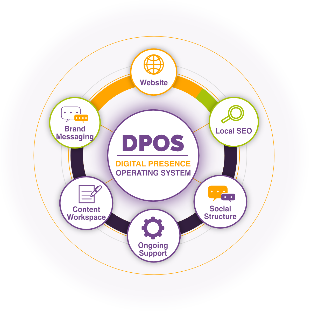 The last piece in our comprehensive approach is to sustain your brand. It means consistently upholding the values, messaging, and visual identity established during web development and amplified through SEO and social media marketing. The cyclical nature of developing a web presence and building a web relevance through a strong maintenance program, is a great building block to sustain the brand.