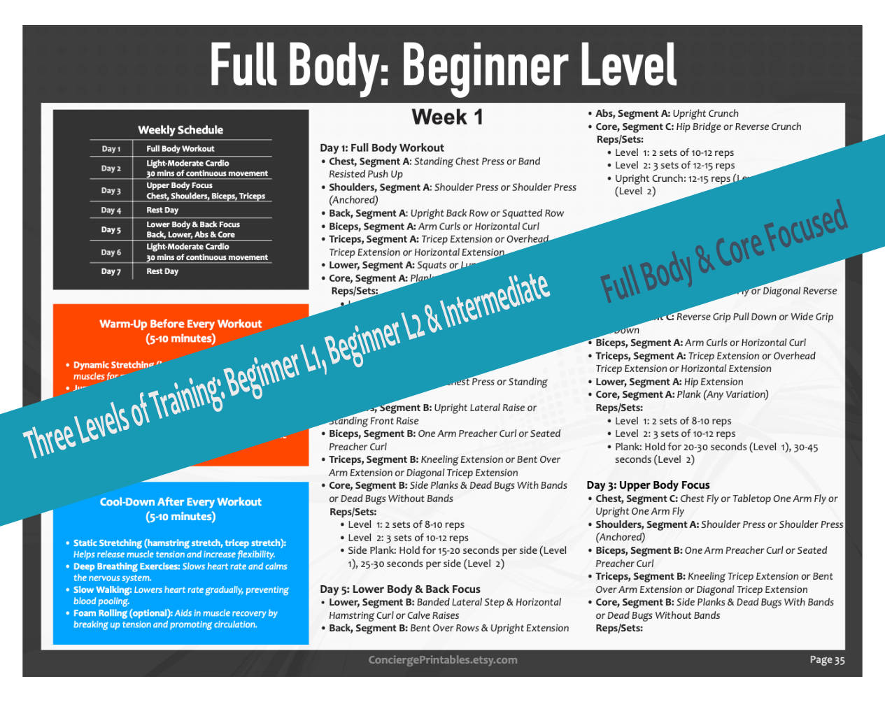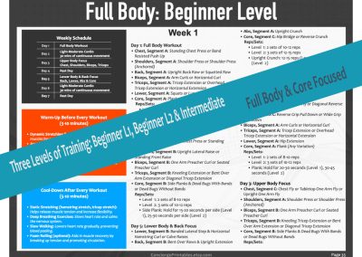 Developed two complete resistance training booklets—Full Body and Core Focused—each featuring beginner and intermediate 4-week workout plans.