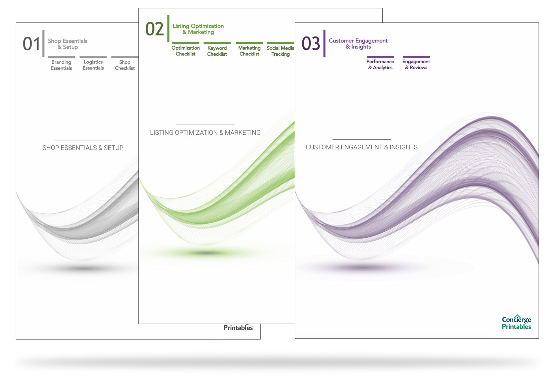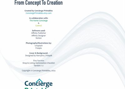 The finished resource provides Etsy sellers with a single, comprehensive guide for creating and managing their shops, ensuring every step is optimized for visibility and customer experience. It helps users keep all critical shop information in one place and supports ongoing shop performance tracking. The booklet has become a cornerstone digital product for Concierge Printables, demonstrating both design expertise and practical, research-based strategy.