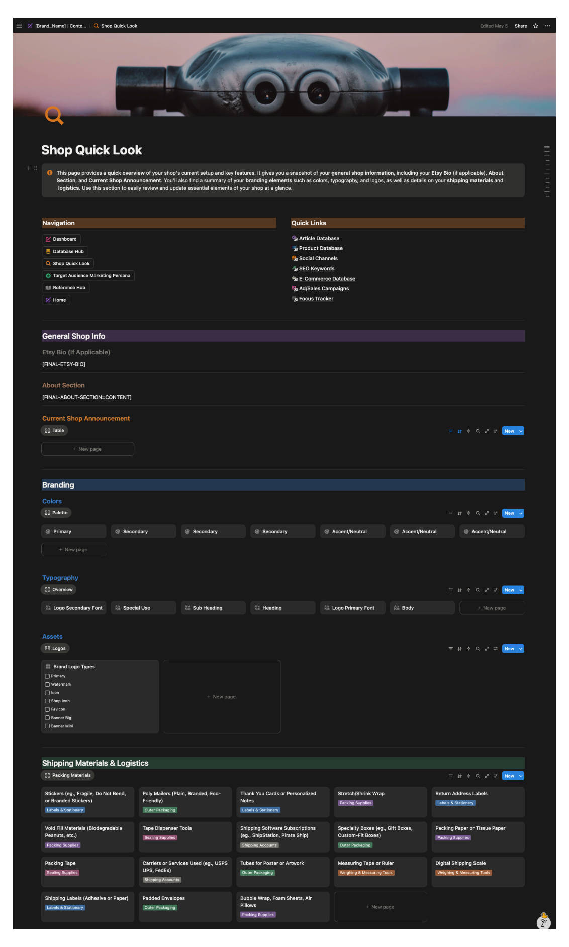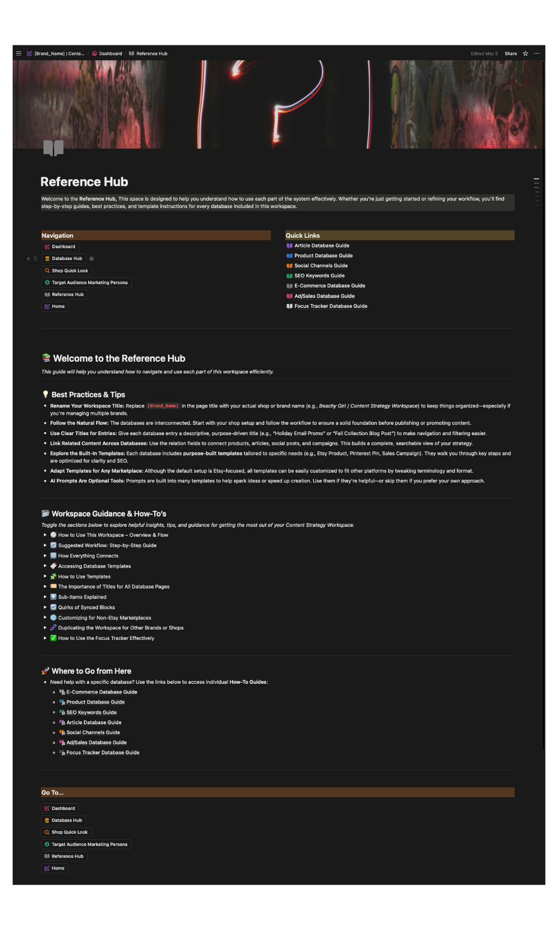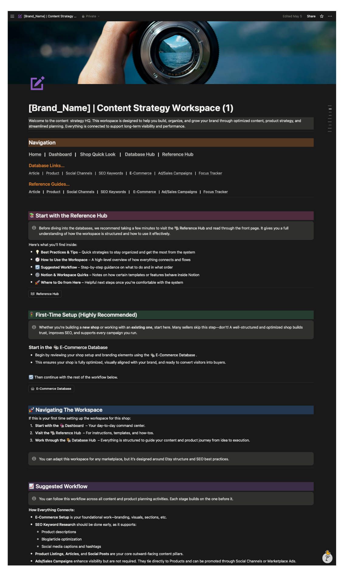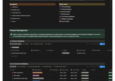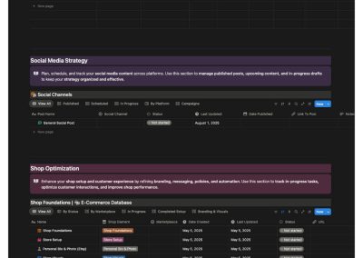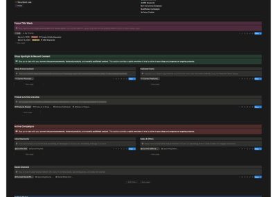 This project originated from a need to unify all content creation and marketing workflows within a single system. While working across multiple areas—web development, SEO, Etsy optimization, and social media—Chris realized his process lacked centralized organization. The Content Strategy Workspace was developed within Notion to bridge that gap and create a structured, repeatable system for managing all creative, marketing, and e-commerce processes.